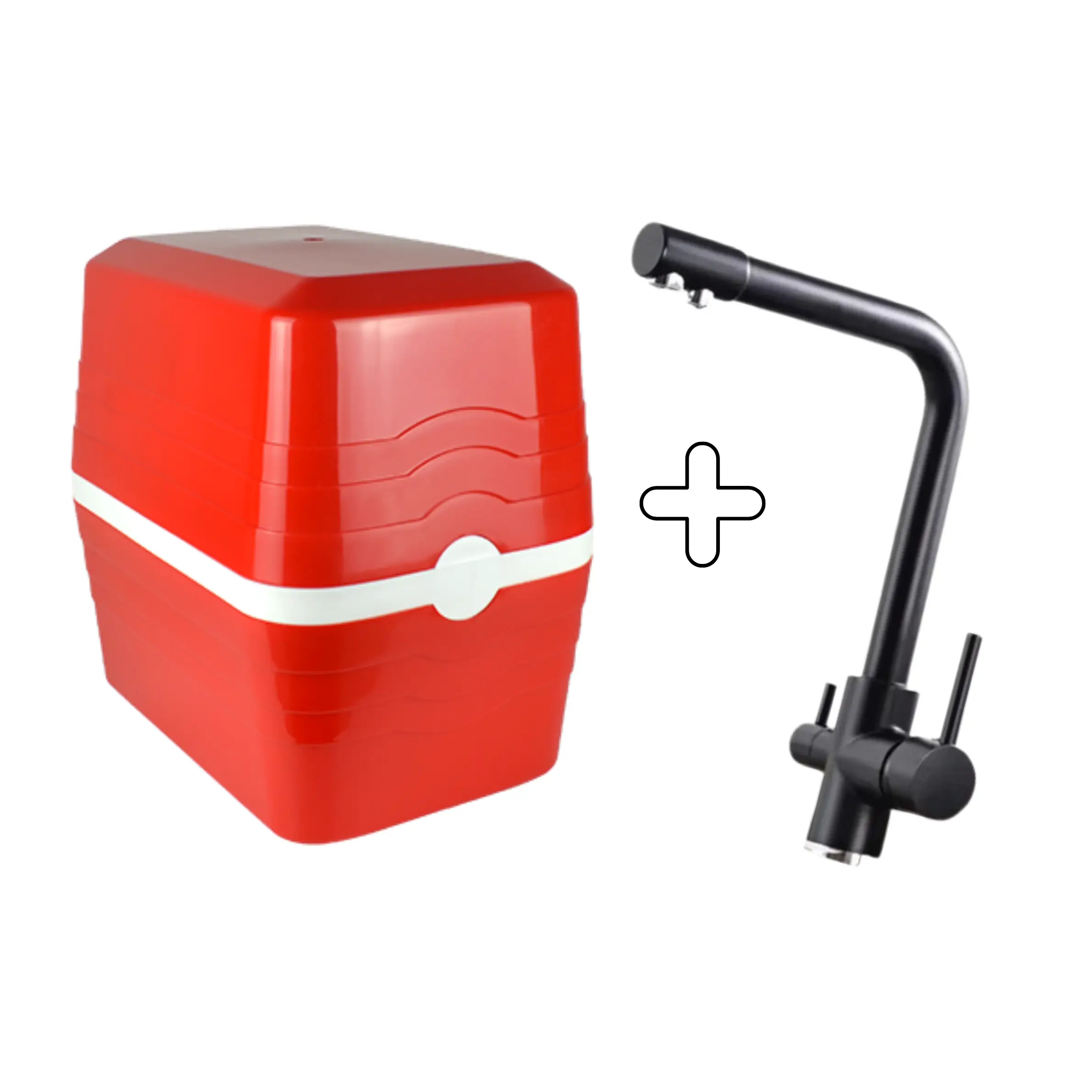Eco One 5 Aşamalı Pompasız – Kırmızı + 3 Yollu Lüks Musluk – Siyah